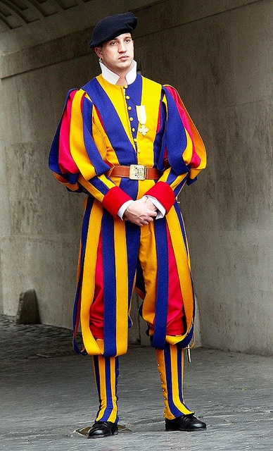 Trong quá khứ, Vệ binh Thụy Sĩ, tên Latin là Custodes Helvetici, là tập hợp những người lính Thụy Sĩ ra đời cuối thế kỷ 15. Họ làm vệ sĩ, bảo vệ nghi lễ, canh giữ cung điện hay đánh thuê cho quân đội các nước tới cuối thế kỷ 19. Ngày nay, lực lượng này chỉ đảm trách nhiệm vụ bảo vệ Giáo hoàng và Tòa thánh Vatican. Họ cũng là quân đội của Vatican, theo Ibtimes.