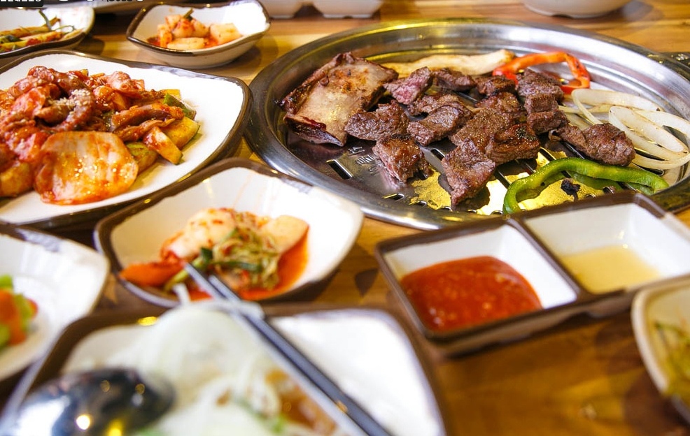 | Panchan (món ăn kèm thịt nướng) đa dạng, thay đổi luân phiên mỗi ngày. |