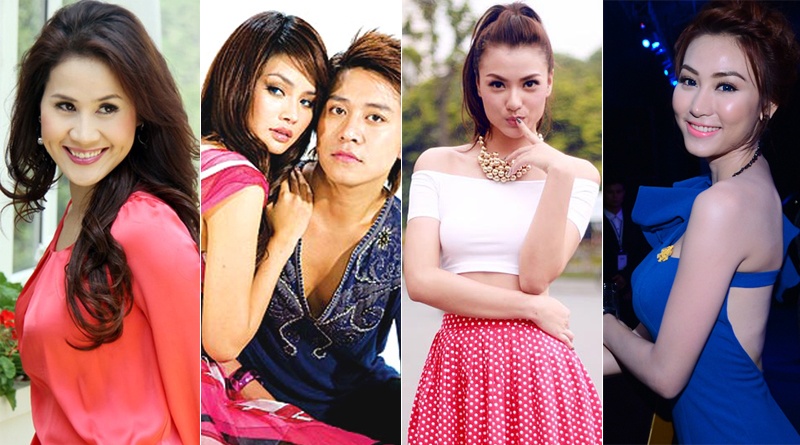 | Ngoại trừ người vợ đầu Hoàng Anh không tham gia showbiz, ba người đẹp còn lại đều là những diễn viên trong đó có Tăng Thanh Hà đóng chung với Huy Khánh trong phim Dốc tình, Mạc Anh Thư cũng quen biết với ông xã từ bộ phim Sắc đẹp và danh vọng năm 2008 mà họ cùng tham gia, trong đó có cả Kim Tuyến khi đó đã là tình cũ. |