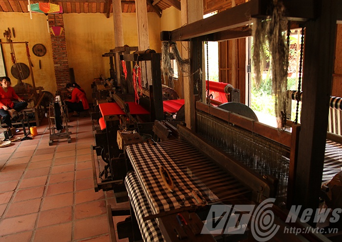 | Những khung cửi cổ xưa, cùng công đoạn se sợi truyền thống được tái hiện ngay trong không gian Làng Lụa. |