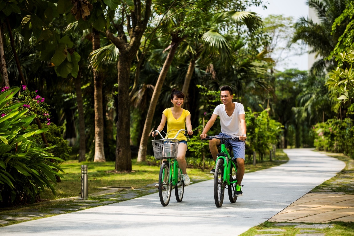| Các cặp đôi cũng thường chọn EcoPark làm điểm hẹn hò lãng mạn cuối tuần. Thong thả đạp xe giữa con đường ngập nắng vàng sẽ mang đến kỷ niệm đẹp cho bạn và người ấy. |