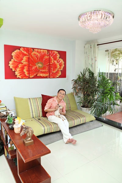 | Đại Nghĩa: Căn hộ nhỏ của diễn viên Đại Nghĩa khá đặc biệt khi được trang trí chủ yếu bởi tông màu xanh nổi bật và cá tính. Anh từng tâm sự, từ năm lớp 9, khi tham gia một hoạt động văn nghệ, bạn bè đã gọi anh bằng biệt danh "con chim xanh". Từ đó, màu xanh cũng trở nên gần gũi và có duyên với anh. |