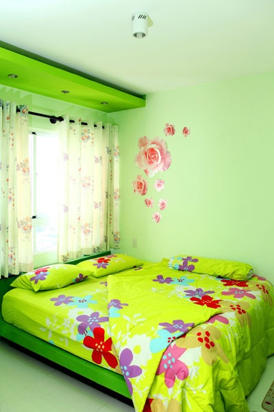 Phòng ngủ và chăn ga gối đệm của Đại Nghĩa cũng được trang trí bằng những tông xanh nhiều sắc thái.