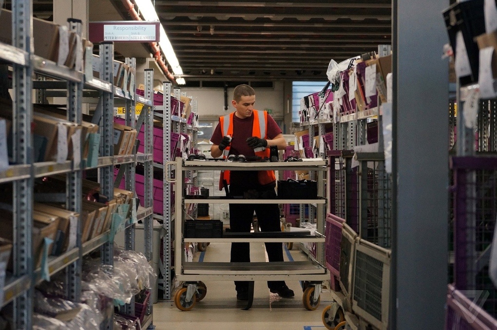Những người thợ tại nhà máy Rolls-Royce có trên tay cả một danh sách dài những bộ phận cần thiết. Sau đó, họ sẽ đi lấy chúng từ một nhà kho rất lớn bên trong nhà máy.