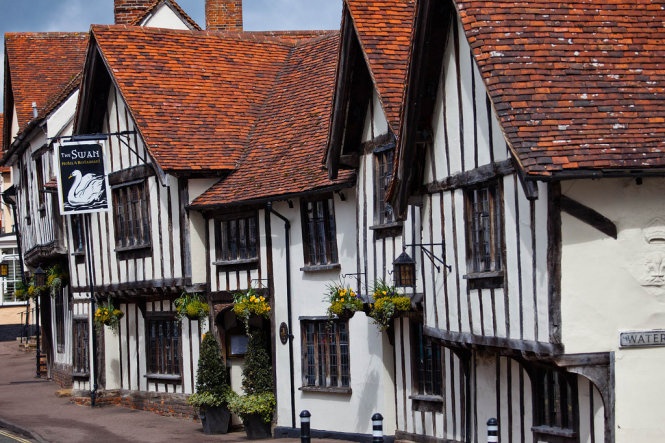 Chỉ cách thủ đô London khoảng hai giờ đi xe, thị trấn thời trung cổ Lavenham đã trở thành một điểm đến hấp dẫn ngoài những cung đường du lịch quen thuộc ở Anh. Trải qua hàng trăm năm trong phồn vinh, Lavenham vẫn giữ toàn vẹn vẻ đẹp của mình qua những ngôi nhà khung gỗ duyên dáng có kiến trúc kỳ lạ vào thời kỳ vương triều Tudor ở Anh (cuối thế kỷ 15 đến đầu thế kỷ 17). Ảnh: Flickr.