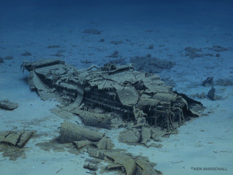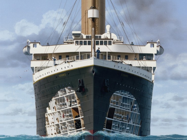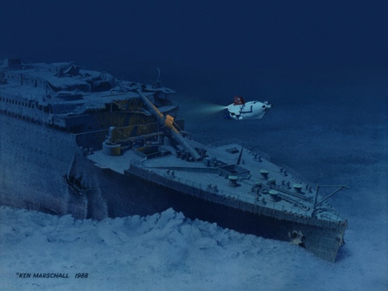 Nhiều thập niên sau, người ta phát hiện xác tàu Titanic ở độ sâu 3,7 km dưới đáy biển. Phần đầu tàu khá nguyên vẹn. |