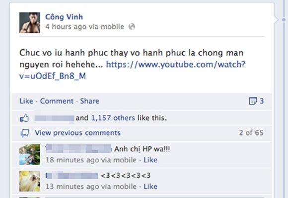 Dù không được ở cạnh thổi nến sinh nhật cùng vợ vào năm ngoái vì Công Vinh đang phải thi đấu cho đội tuyển Việt Nam trong khuôn khổ AFF Cup diễn ra tại Thái Lan, nhưng nam cầu thủ vẫn gửi lời chúc ý nghĩa từ Thái Lan cho vợ bằng cách viết lên áo dòng chữ: "Chúc mừng sinh nhật bà xã 25/11".