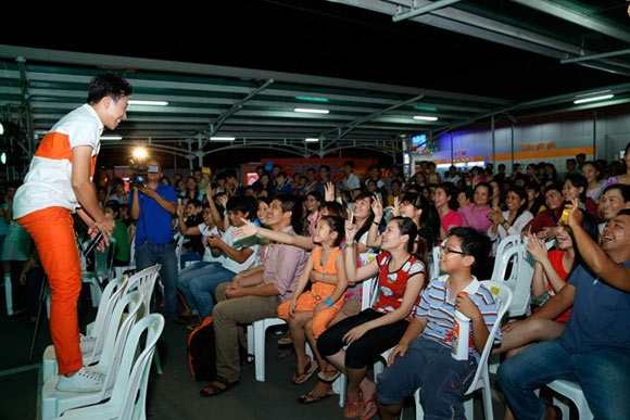 | Trấn Thành hát tặng bạn gái trong buổi off fan gần đây. |
