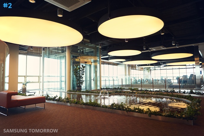 | Căn phòng có tên MIMO (Multiple Input Multiple Output), sử dụng công nghệ truyền thông không dây với tốc độ nhanh gấp 4 lần sóng Wi-Fi này là nơi người ta thử nghiệm những chiếc điện thoại Galaxy đầu tiên. Nơi này có riêng một sân bay và máy bay trực thăng luôn sẵn sàng đưa đón khách đến tham quan. |