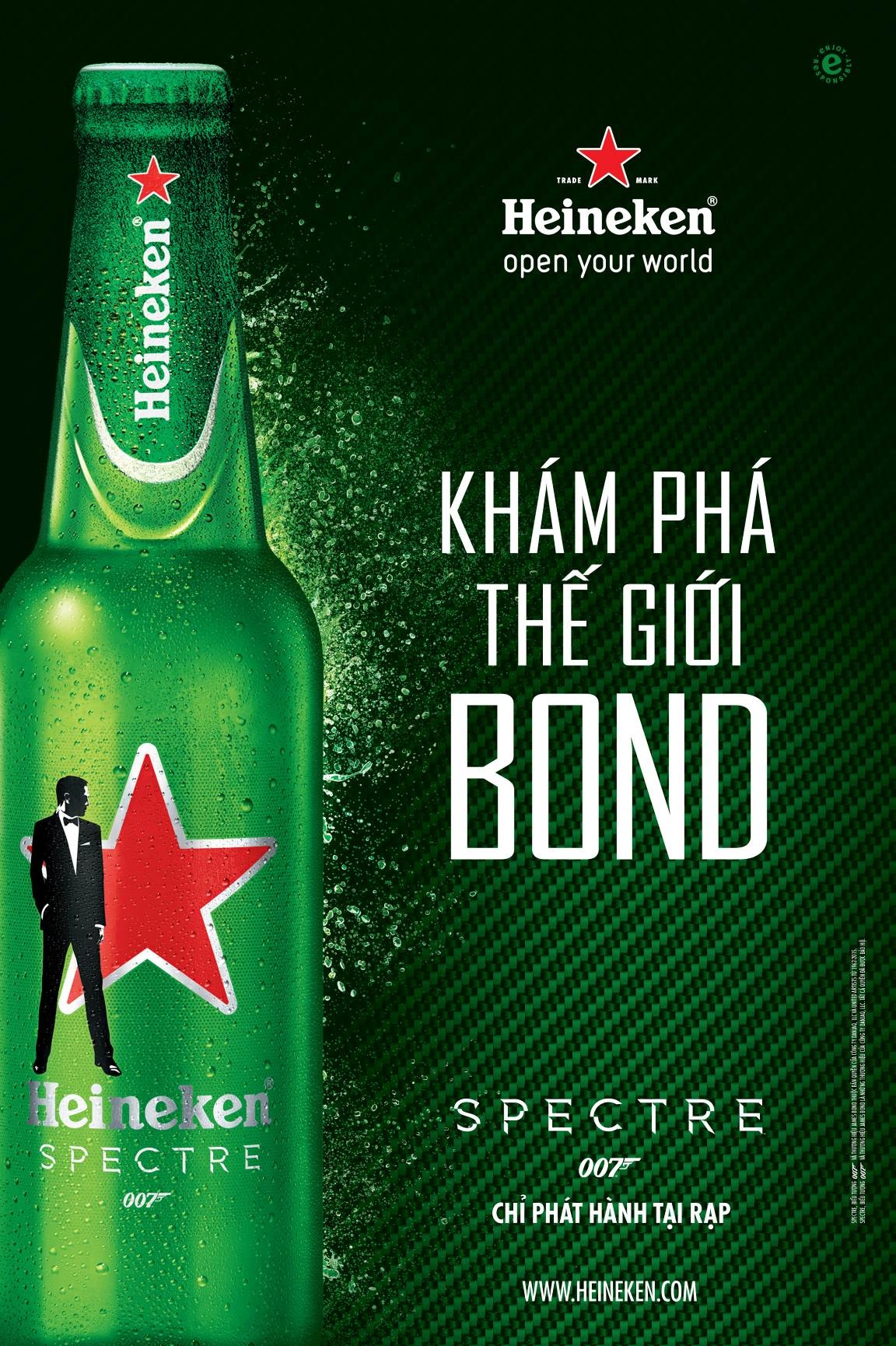Series James Bond được xem là một trong những biểu tượng của làng điện ảnh thế giới khi tạo dựng nên một điệp viên huyền thoại, luôn mạnh mẽ, bứt phá, dám thách thức mọi giới hạn. Sự trở lại màn ảnh lần này với siêu phẩm bom tấn Spectre vừa thu hút đông đảo sự chờ đợi của công chúng trong suốt năm nay đồng thời đánh dấu quãng thời gian hợp tác tốt đẹp giữa Heineken và loạt phim James Bond được bắt đầu năm 1997 kể từ bộ phim Tomorrow Never Dies (Ngày mai không tàn lụi).