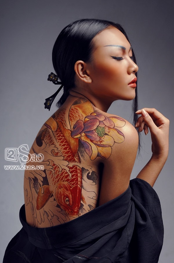 | Siêu mẫu Hạ Vi là người khá nổi tiếng trong làng mẫu Việt. Cô sở hữu một hình xăm nghệ thuật chiếm gần như nửa tấm lưng ngọc. |