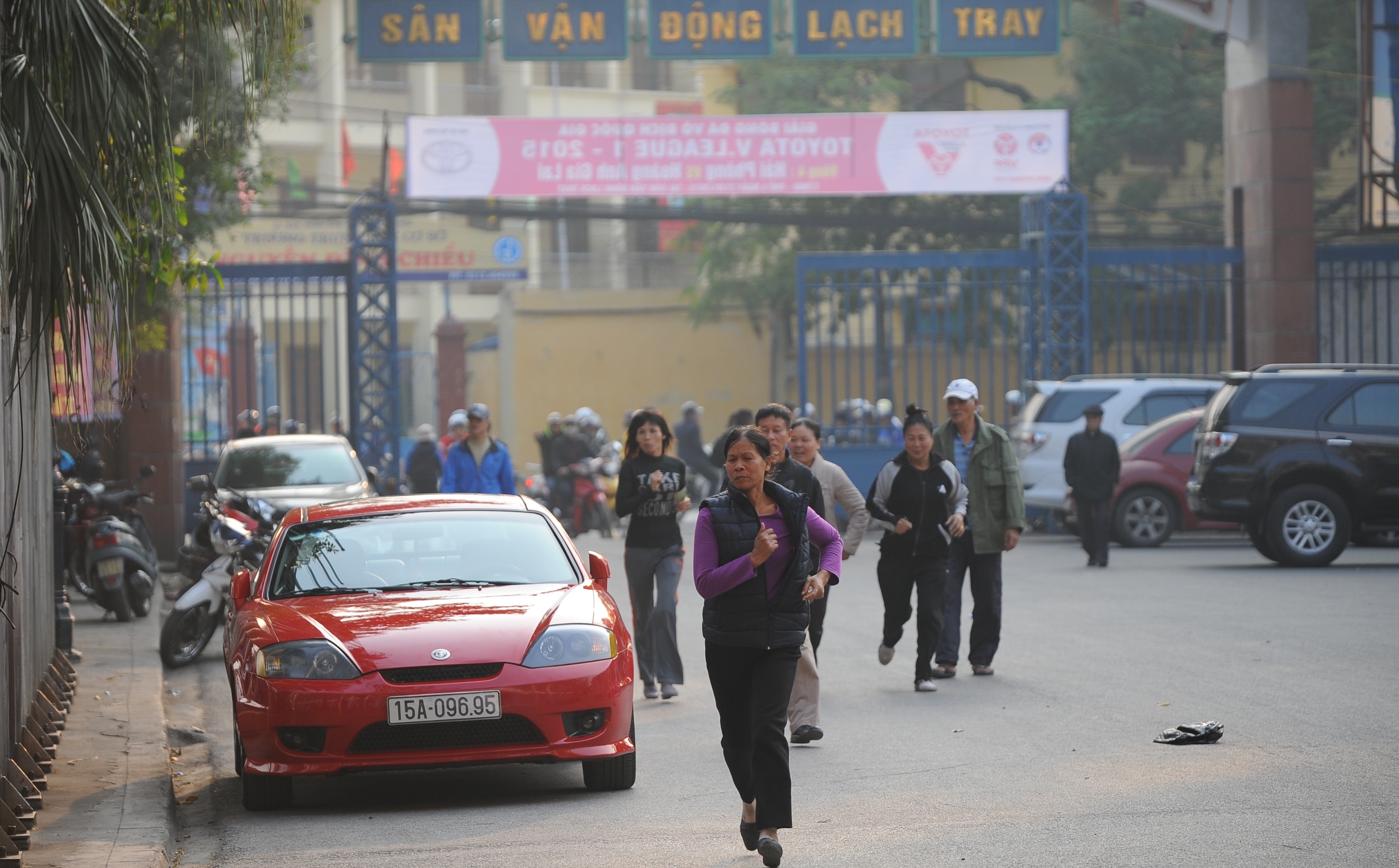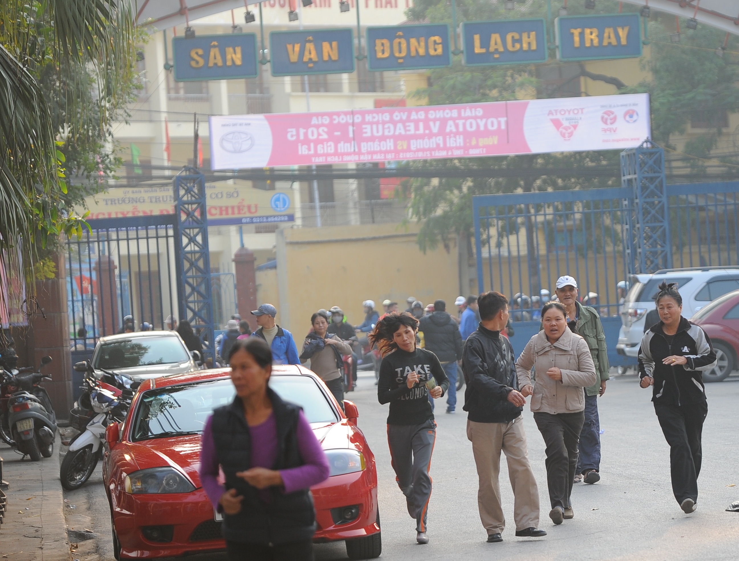 | Người dân và không ít phe vé đổ xô chạy đến phía cổng 1A2 SVĐ Lạch Tray. |