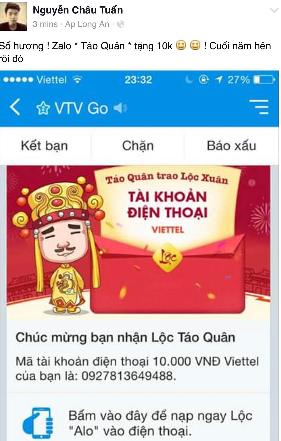Song song đó, trên khắp các trang cá nhân, nhiều thành viên cũng hồ hởi chia sẻ tâm trạng “phấn khởi” khi nhận quà. Thành viên Facebook có tên Cu Hữu Tí Hon vui vẻ: “Năm mới như vậy là may lắm đây. Chưa gì Zalo đã ban lộc cho rồi”.