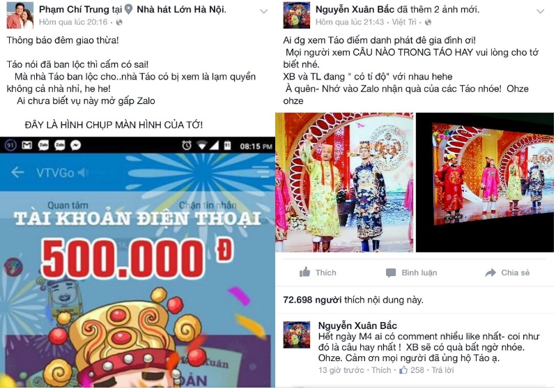Khán giả xem Táo quân khoe quà từ Zalo với Chí Trung, Xuân Bắc. |