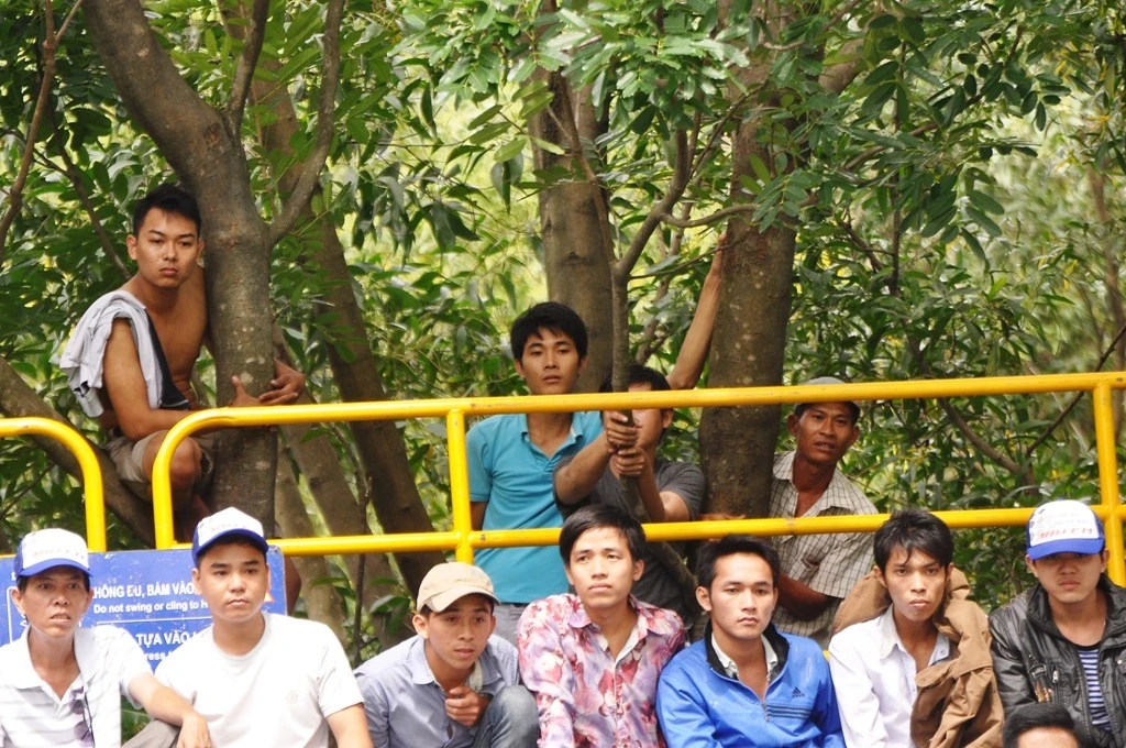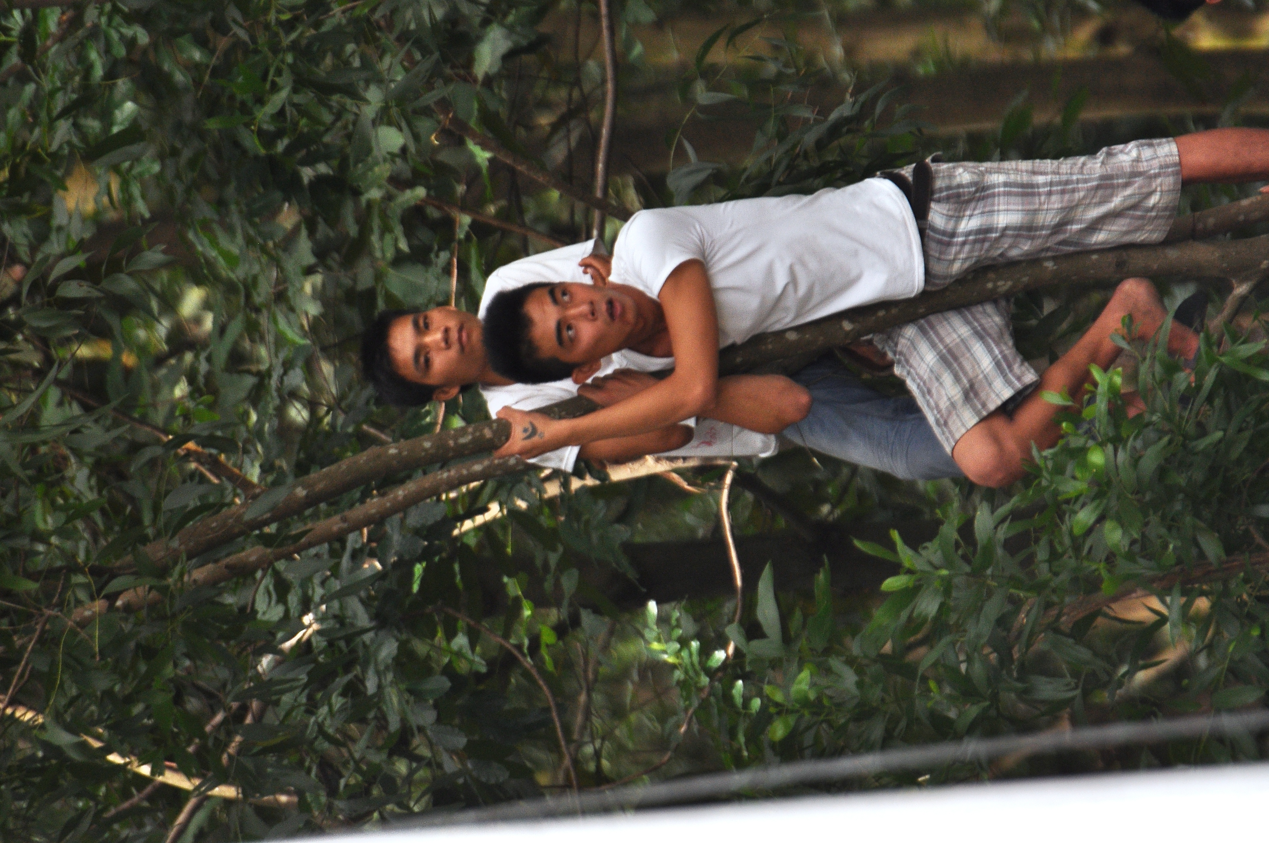 | Nhiều người còn đu lên cả ngọn cây, vốn rất yếu. |