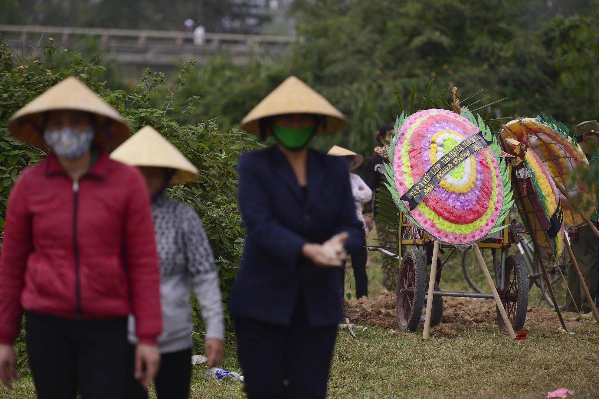 | Vòng hoa được người dân làng Yên Thái đưa ra nghĩa trang. |
