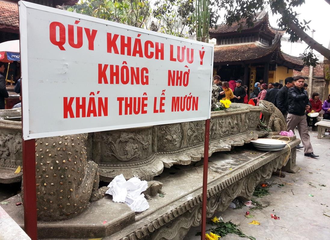| Biển khuyến cáo du khách không nhờ người "khấn thuê, lễ mướn". |
