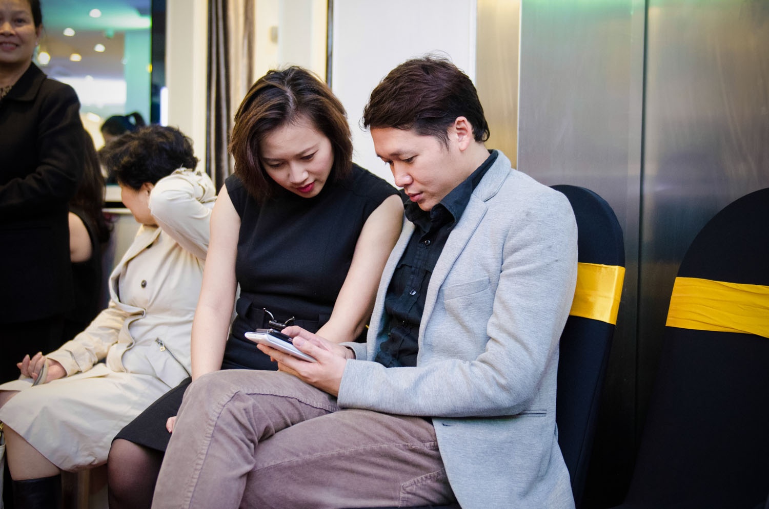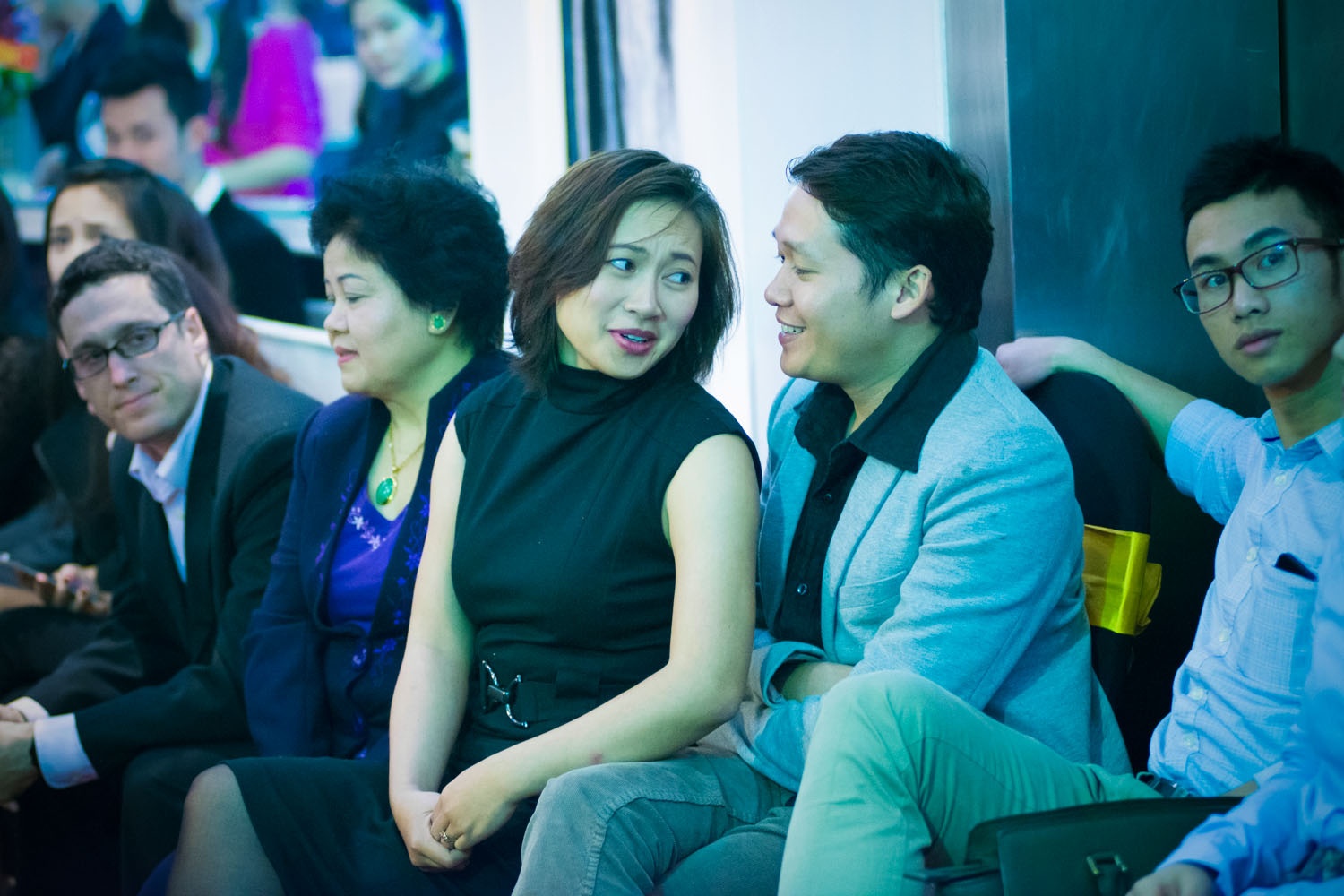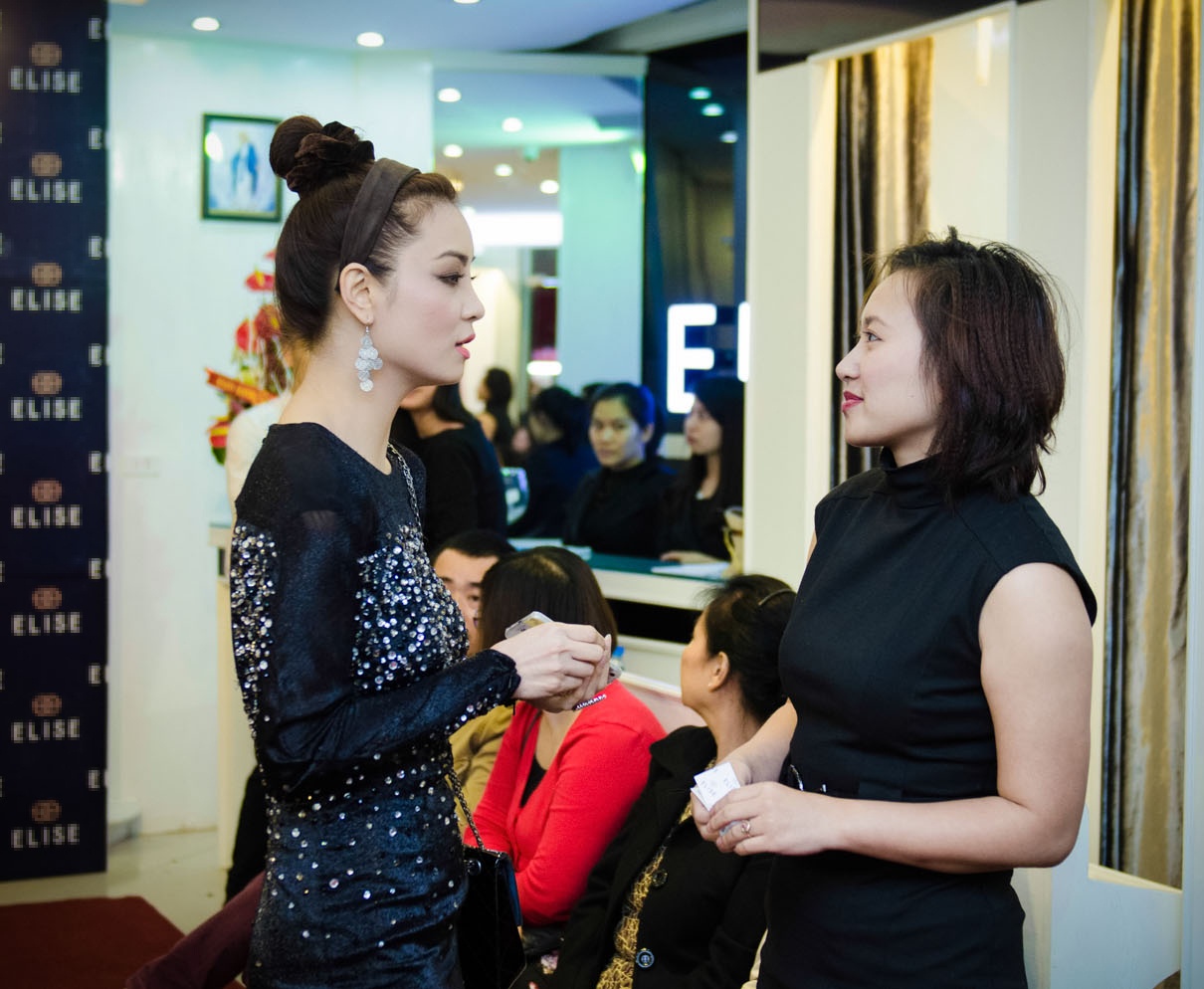 | Nữ ca sĩ tranh thủ trò chuyện với doanh nhân Mai Thu Trang - chị gái của diễn viên Mai Thu Huyền. |