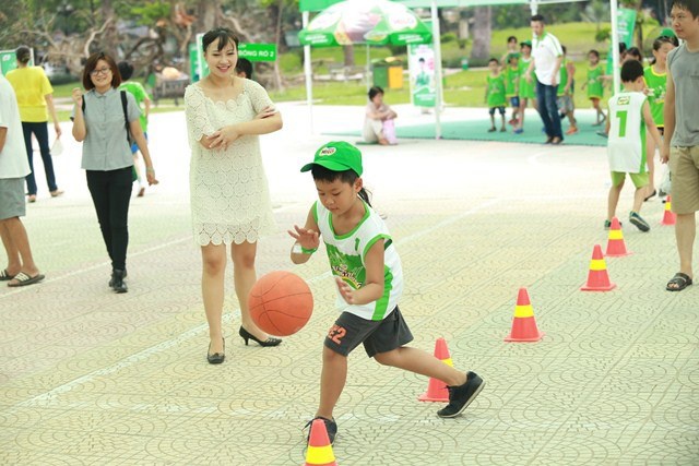 | Khánh Linh được nhiều người khen là mẹ kế tâm lý khi dành nhiều thời gian để chia sẻ với con riêng của chồng. Cô theo dõi cậu bé chơi bóng rổ và không ngừng động viên bé làm tốt hơn. |