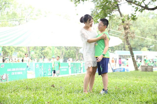 | Tham gia trại hè cùng hai con trai và hàng ngàn thiếu nhi khác, nữ ca sĩ cho biết, cô rất thích các hoạt động ngoài trời thế này và mong muốn thế hệ trẻ tại Việt Nam thường xuyên tập thể dục, sinh hoạt các hoạt động ngoại khoá để có một tinh thần, cơ thể khoẻ mạnh. |