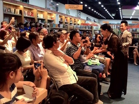 | Hình ảnh Khánh Ly với độc giả trong buổi giao lưu. |