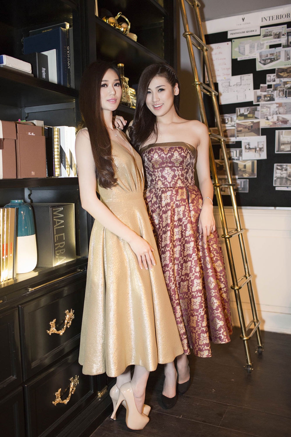 | Các người đẹp bên nhà thiết kế Thái Công (giữa). |