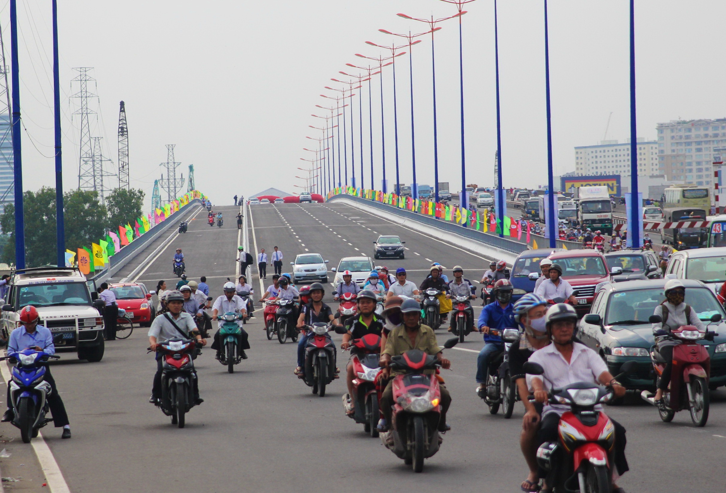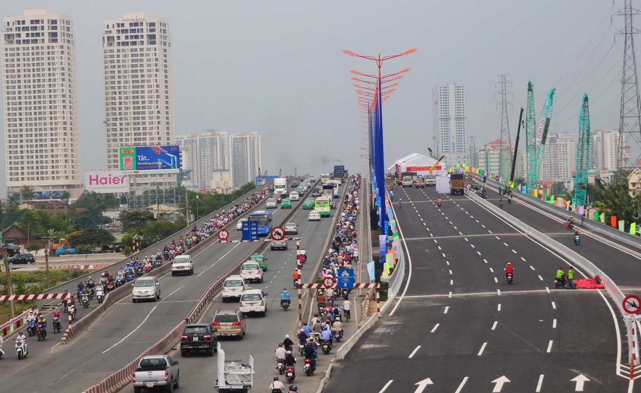 Lãnh đạo trung ương và TP.HCM cắt băng khánh thành cầu Sài Gòn 2. Hai chiếc cầu song song có quy mô 12 làn xe đảm bảo tính đồng bộ và quy mô với xa lộ Hà Nội sau khi được mở rộng 12 làn xe và 4 đường dân sinh ở 2 bên.