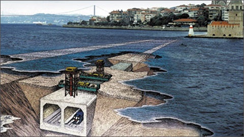 | Hình vẽ mô phỏng vị trí và thiết kế của đường hầm Marmaray. Ảnh : Emlakwebtv |