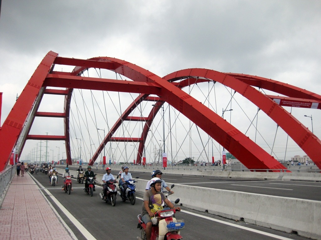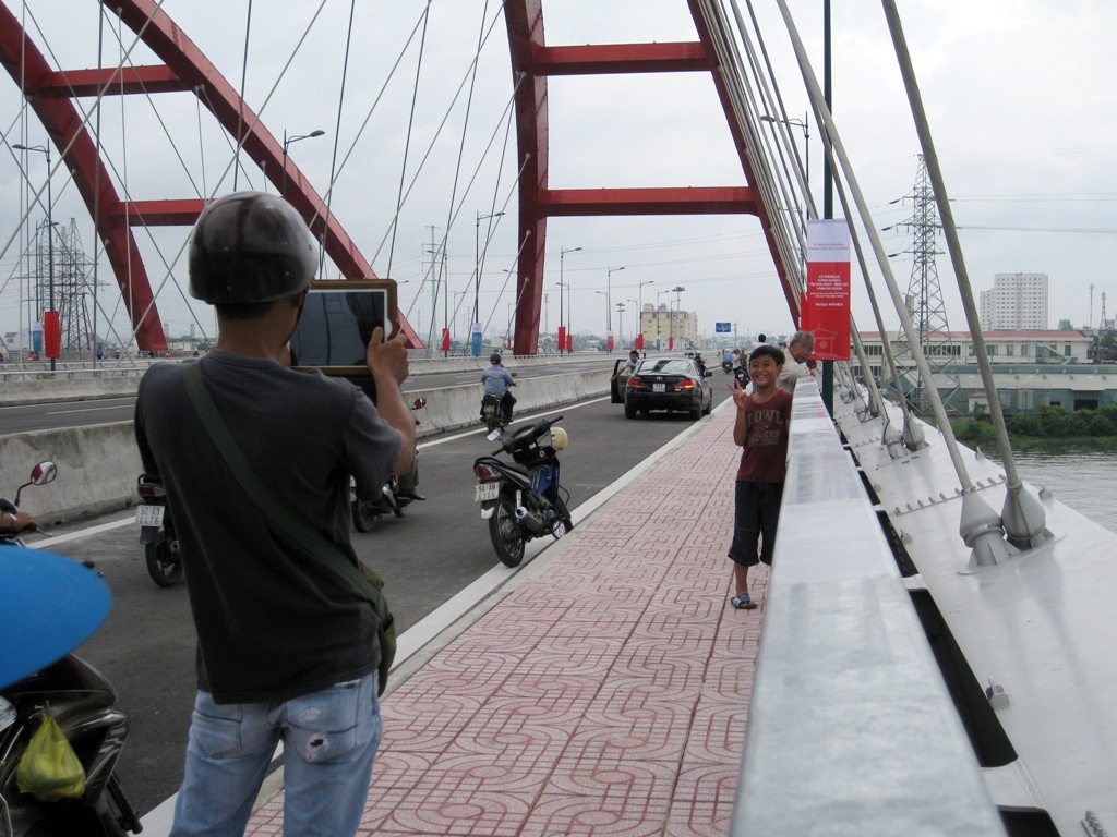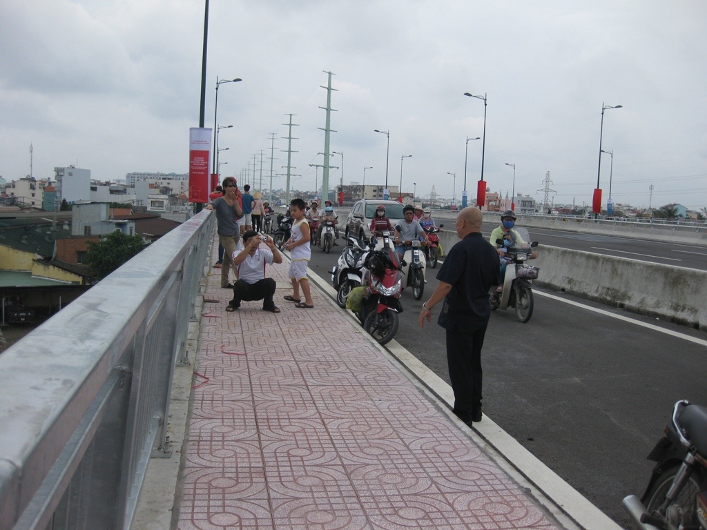 | Sau khi tuyến đường chính thức thông xe, nhiều người dân lên cầu Bình Lợi tham quan, chụp ảnh lưu niệm. |