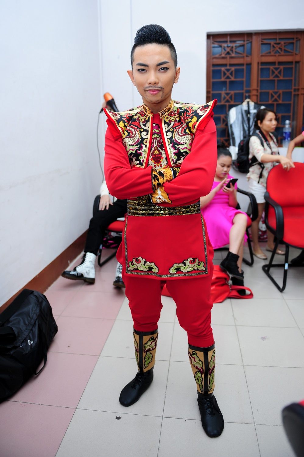 | Ở hậu trường trước đó, Phan Hiển tươi tắn khi được các ống kính săn đón. |