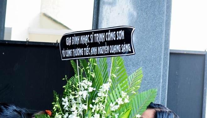 | Gia đình nhạc sĩ Trịnh Công Sơn - người bạn thân của nhà văn Nguyễn Quang Sáng - gửi vòng hoa chia buồn. Bản thân đạo diễn Quang Dũng cũng hy vọng ở một nơi xa xôi nào đó, ba anh sẽ hạnh phúc vì được tái ngộ những người bạn cũ như nhạc sĩ Trịnh Công Sơn, Bảo Phúc... |