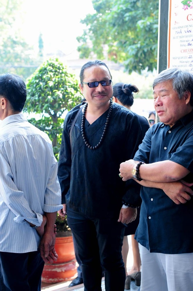 | Nhạc sĩ Trần Mạnh Tuấn đứng lẫn trong đám đông tới viếng nhà văn Nguyễn Quang Sáng. |