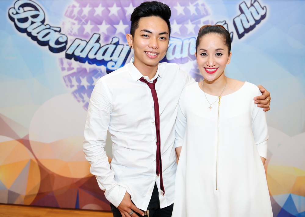 | Khánh Thi ân cần chăm sóc, động viên cặp vũ công nhí. |