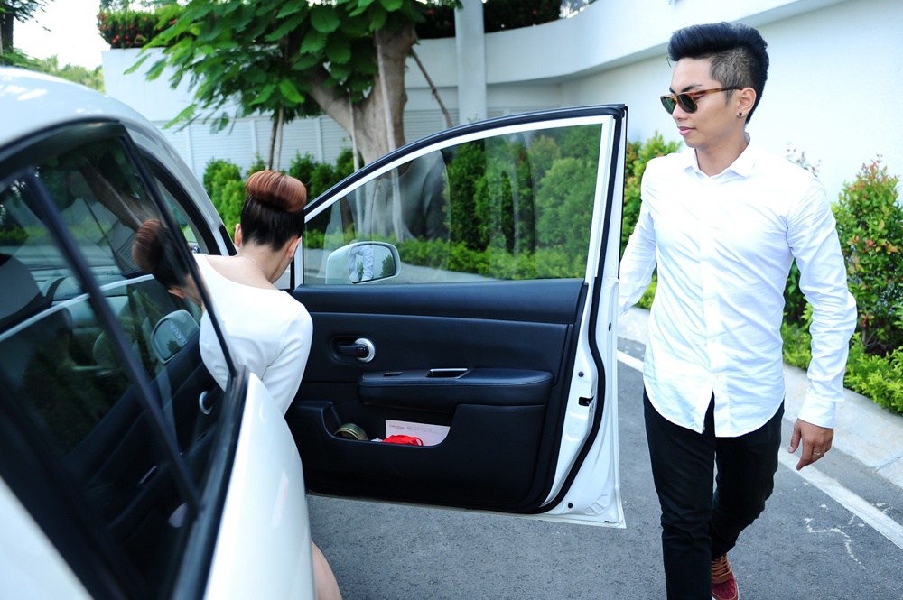 | Sau khi kết thúc buổi tuyển chọn, Khánh Thi được Phan Hiển tháp tùng ra xe riêng. |