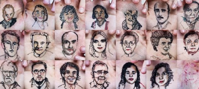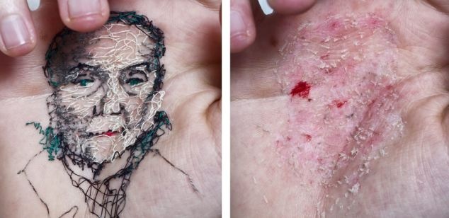 Một nghệ sĩ Tây Ban Nha đã dùng kim chỉ khâu 20 bức chân dung của những người thân yêu vào lòng bàn tay anh.