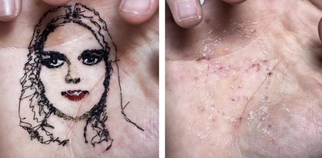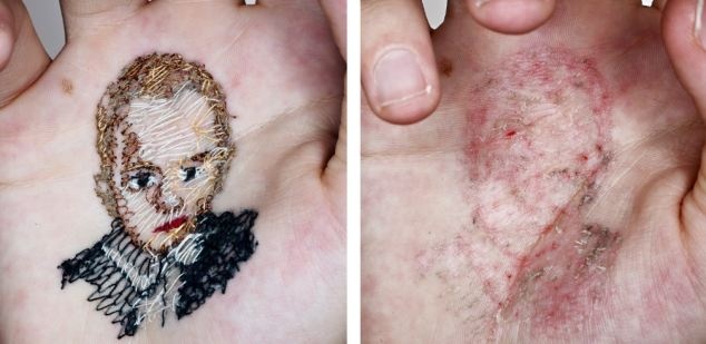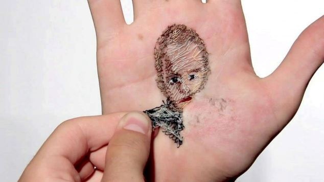 Nghệ sĩ David Cata (21 tuổi) đã thực hiện dự án nghệ thuật mang tên "Cảm xúc bùng nổ". David đã dùng kim chỉ khéo léo khâu những bức chân dung người thân trong gia đình, bạn gái, bạn học vào lòng bàn tay của anh.