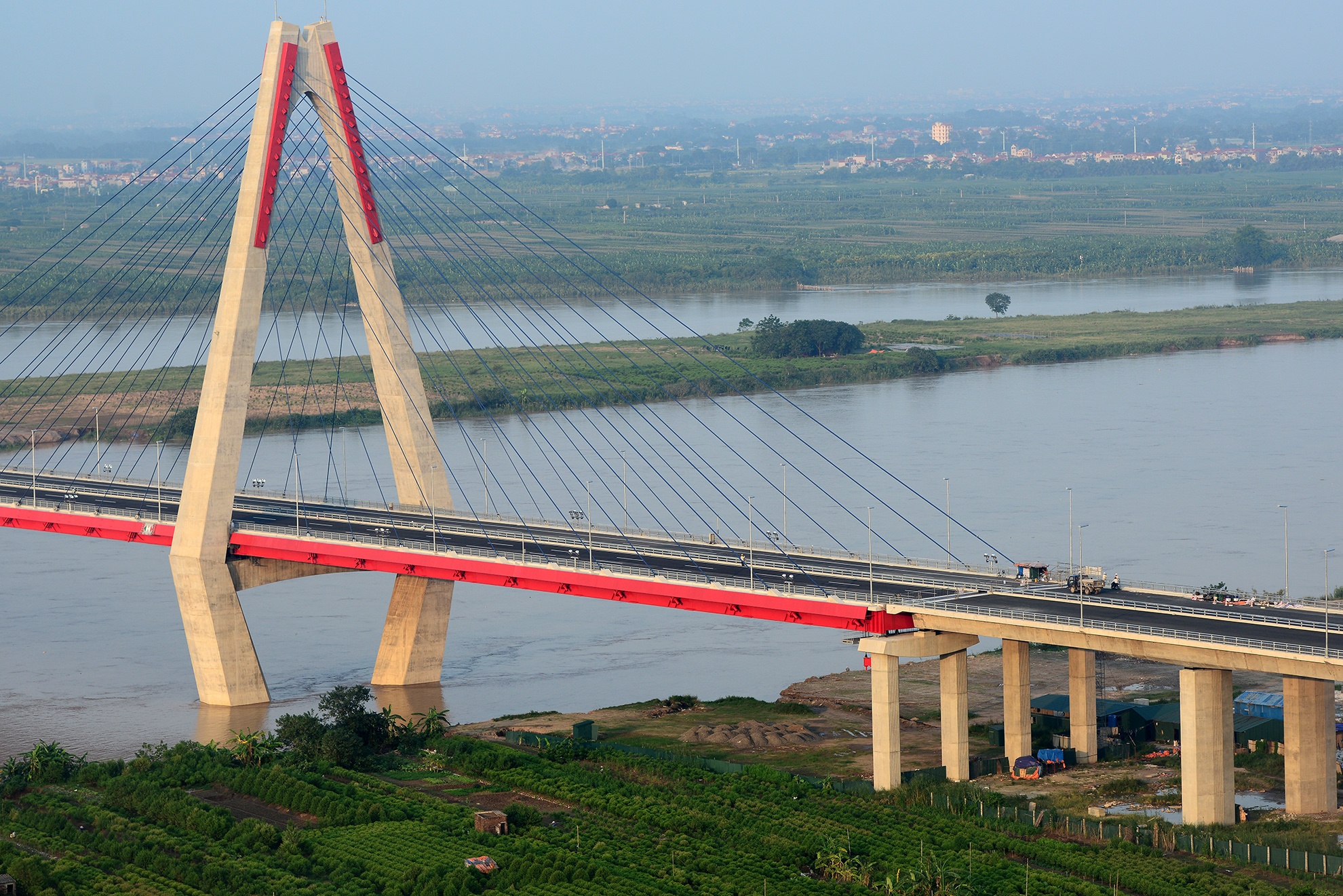 Cầu Nhật Tân (Hà Nội) khánh thành và đưa vào sử dụng từ đầu năm 2015. Đây là cây cầu dây văng liên tục nhiều nhịp lớn nhất Việt Nam hiện nay với số vốn đầu tư 6.700 tỷ đồng. Tổng cộng chiều dài khoảng 4,5 km, riêng phần vượt sông là 3,9 km.