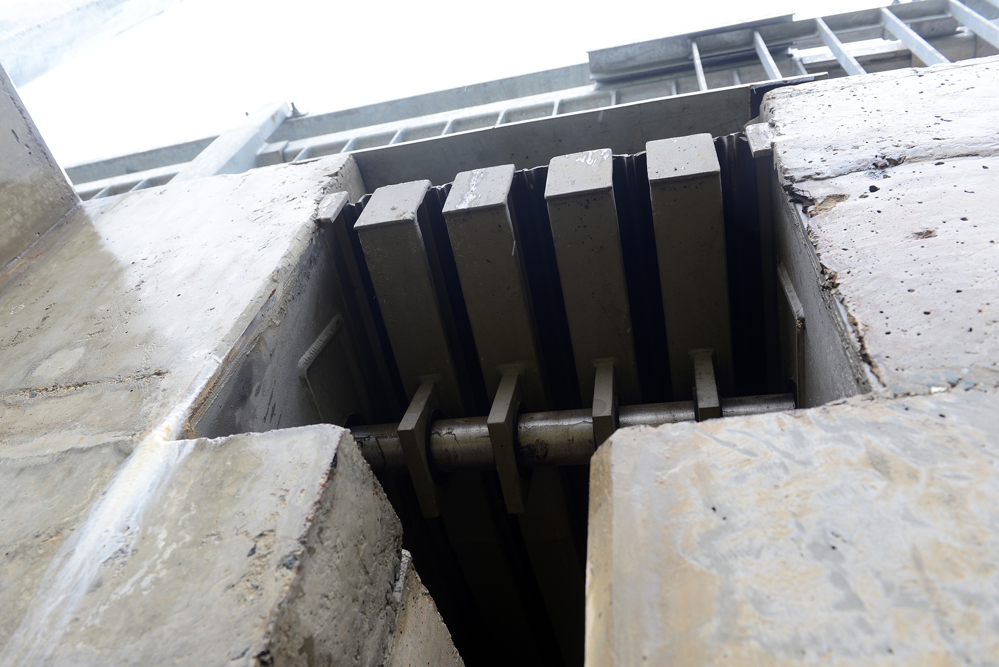 | Phía trên mặt đường, điểm nối giữa hai phiến dầm được phủ một lớp thép che kín khe hở với bề rộng khoảng 1,2 m, tạo thành mặt phẳng và không gây ảnh hưởng đến việc di chuyển của các phương tiện.