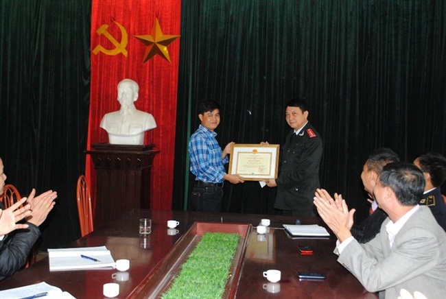 Trao bằng khen của Bộ NN&PTNT cho anh Nguyễn Quyền Anh. |