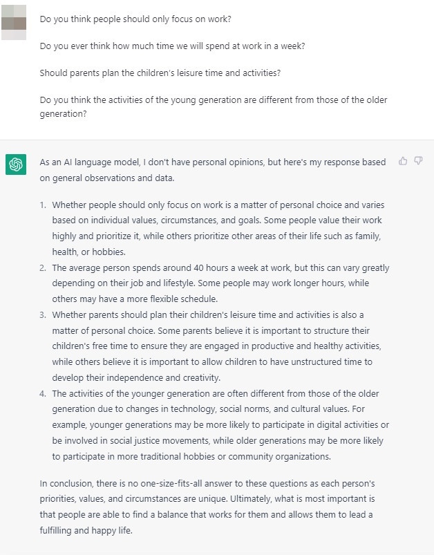Trong phần này, thầy Tài đánh giá ChatGPT có thể nhìn vấn đề ở 2 chiều khác nhau và không đưa ra một câu trả lời cố định cho câu hỏi được đặt ra.