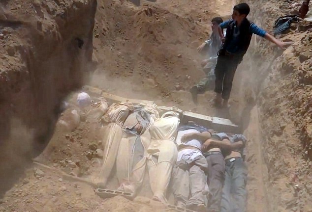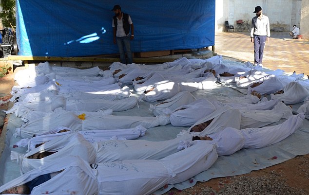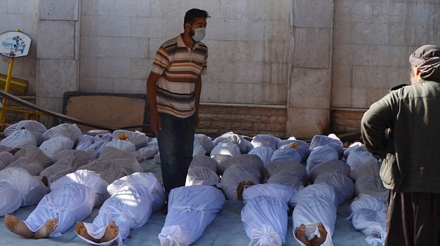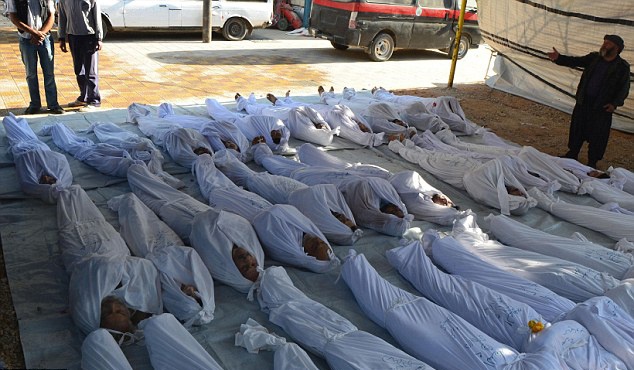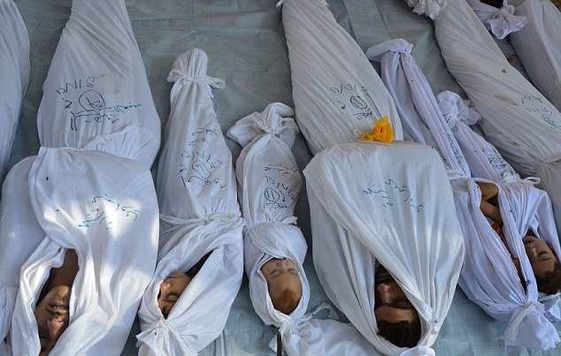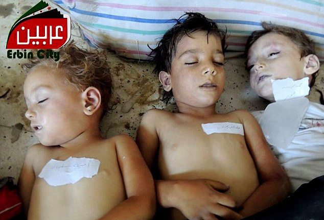 Thi thể những em bé bỏ mạng vì vũ khí hóa học. Dấu hiện trên cơ thể các em cho thấy, khí độc thần kinh dường như là thủ phạm gây ra cái chết của những sinh linh bé bỏng. Ảnh: Reuters. |