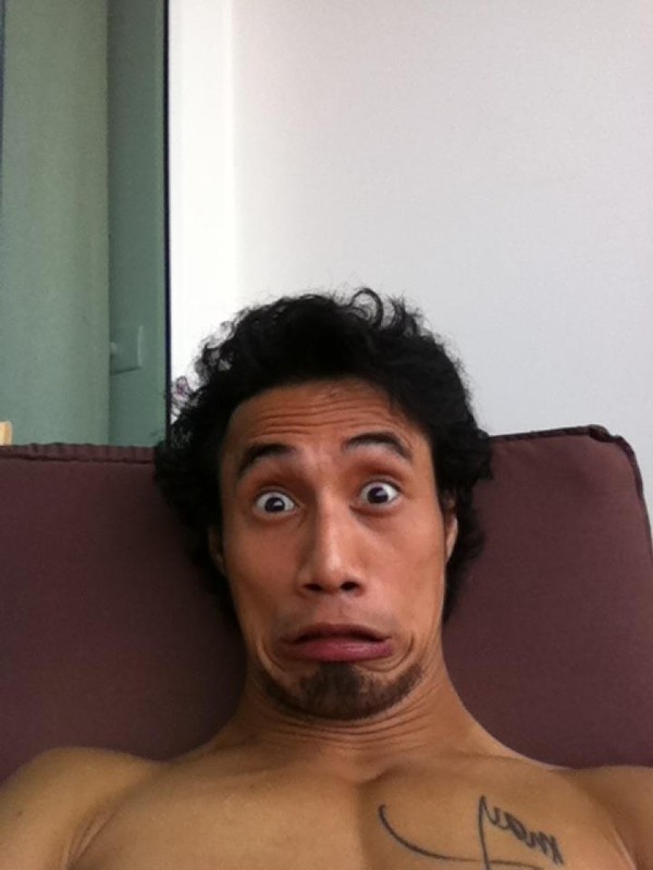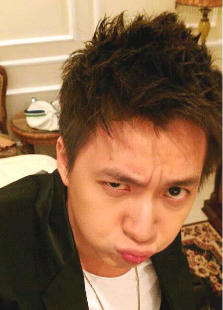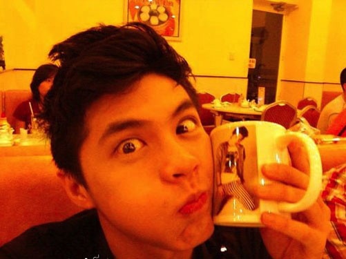 | Ngô Kiến Huy phồng má, chu mỏ xì-tin để chụp ảnh. |