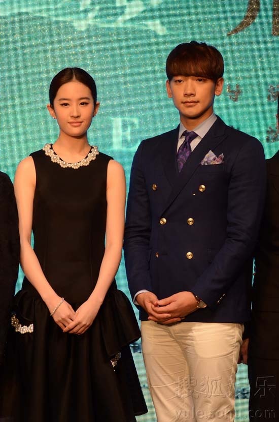 Hôm 26/3, Bi Rain và Lưu Diệc Phi cùng tham gia buổi họp báo khởi quay bộ phim Lộ thủy hồng nhan được tổ chức ở Thượng Hải, Trung Quốc. Diện bộ đồ tối màu bị đánh giá là "nặng nề", kém sang cộng với kiểu tóc rẽ ngôi giữa đơn điệu và cách trang điểm nhợt nhạt, Lưu Diệc Phi trông rất bình thường khi đứng cạnh trai đẹp Bi Rain.