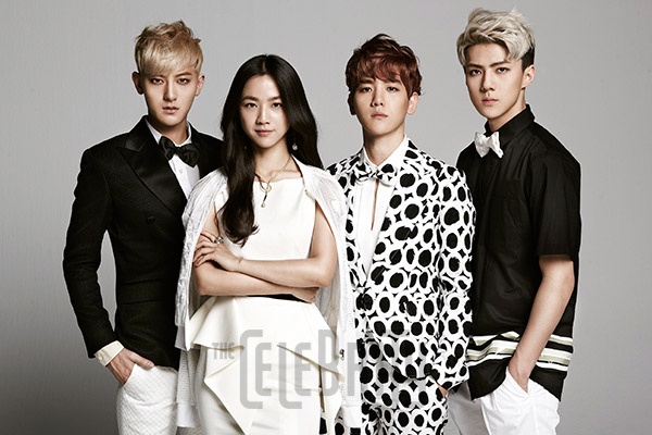 | Cô tự tin khoe vẻ đẹp vượt thời gian của mình bên 3 thành viên nhóm nhạc EXO. |