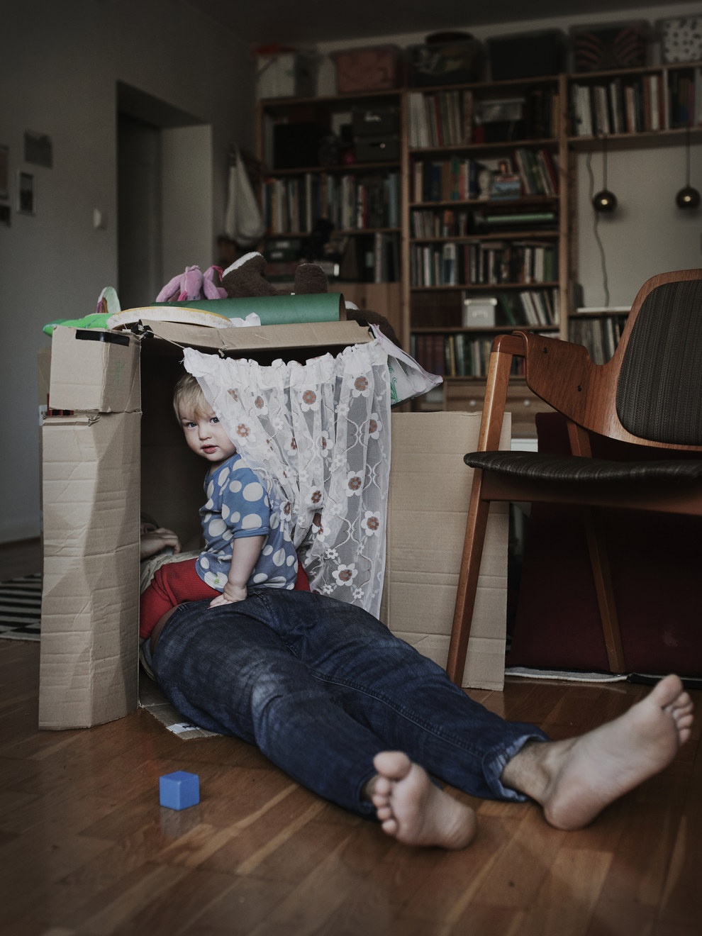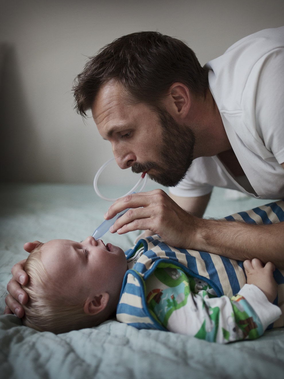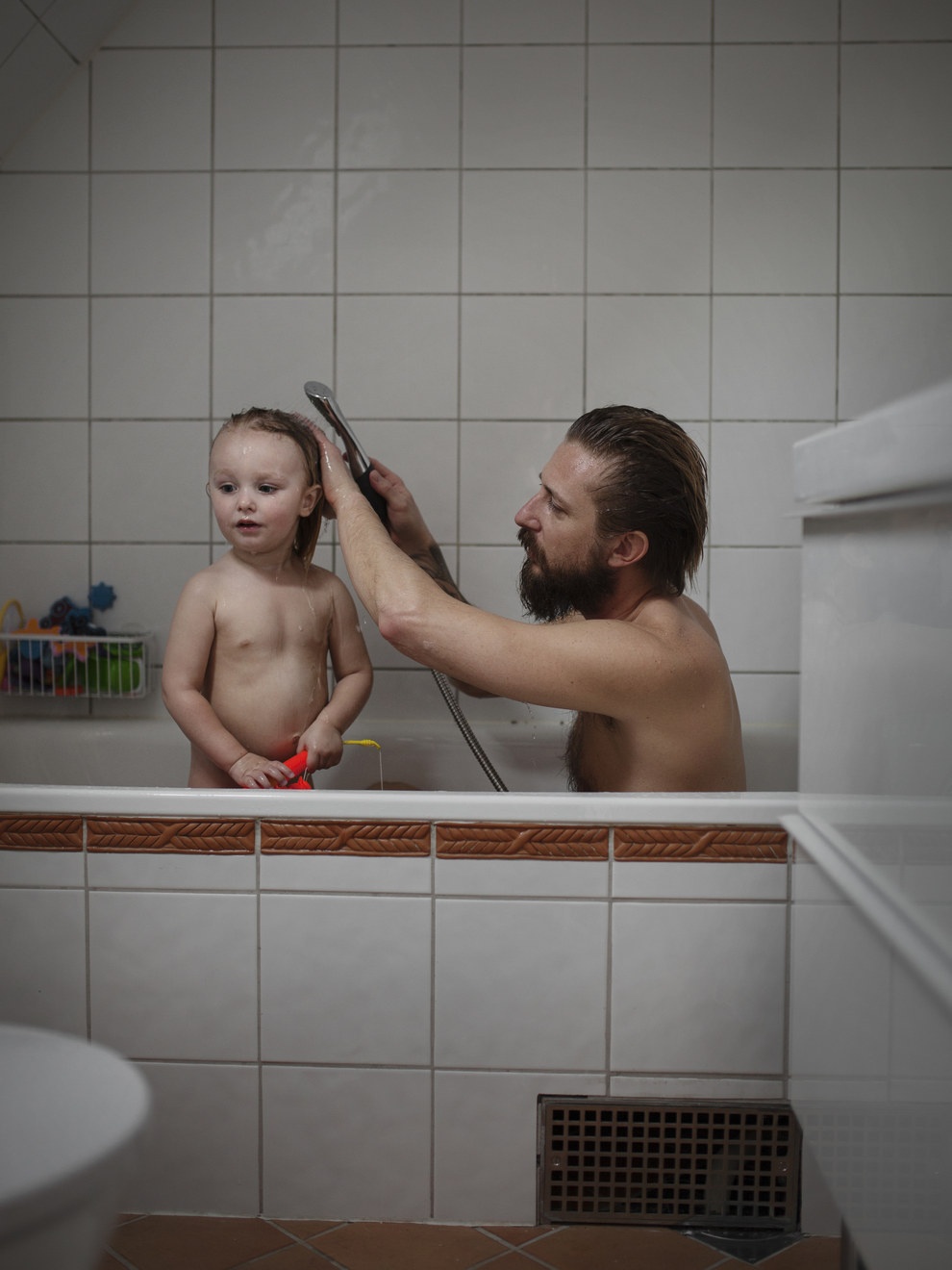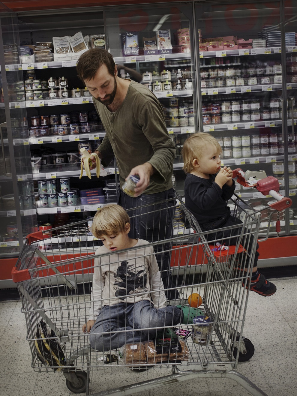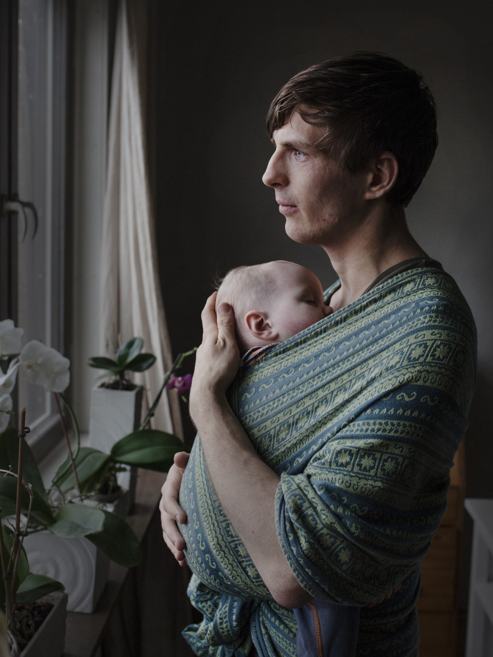Nhiếp ảnh gia Johan Bavman ghi lại khoảnh khắc những ông bố trên khắp Thụy Điển ở nhà cùng con, tất bật và đảm đang không kém gì những người mẹ. Johan Ekengard (ảnh), người phát triển sản phẩm tại công ty Sandvik, cho biết anh và vợ chia sẻ thời gian chăm sóc các con Ebbe, 7 tuổi, Tyra, 5 tuổi, và Stina, 1 tuổi. "Nghỉ việc trong một thời gian dài đồng nghĩa với việc gia đình sẽ mất một khoản thu nhập. Tuy nhiên, đối với tôi, việc này vô cùng đáng giá. Tôi có thể làm tròn trách nhiệm của một người cha, đồng thời chia sẻ những khó khăn với vợ. Chúng tôi ngày càng gắn bó hơn", người đàn ông 38 tuổi nói.