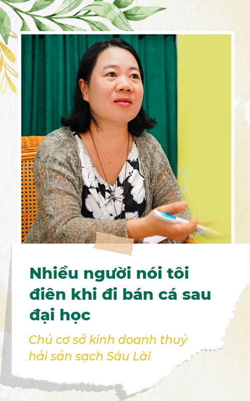 Thiếu nữ hơn 20 tuổi ngày ấy nhận ngay gáo nước lạnh khi hào hứng chia sẻ dự định sau 4 năm học Đại học Công nghệ Thực phẩm. Mày làm vậy rồi sao có lời. Người ta ai cũng tẩm hóa chất mới mong kinh doanh được. Điên hay sao lại làm chuyện không giống ai. Học xong 4 năm lại đi bán cá à con!... những câu nói chen nhau ập vào tai, khiến chị mơ hồ về kế hoạch mình ấp ủ bấy lâu.