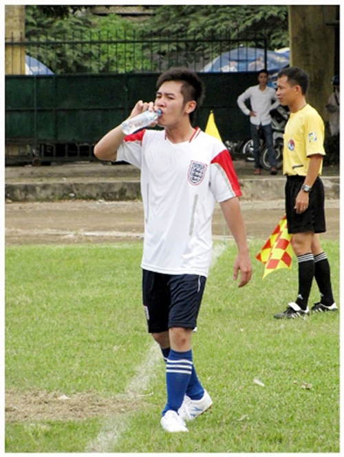 | Lê Hoàng - thành viên nhóm The Men là một trong những nghệ sĩ nam có niềm đam mê bóng đá lớn nhất. Dù bận rộn với lịch diễn dày đặc nhưng qua mỗi tỉnh thành, Lê Hoàng luôn cố gắng tìm các đội banh để đá giao hữu. |
