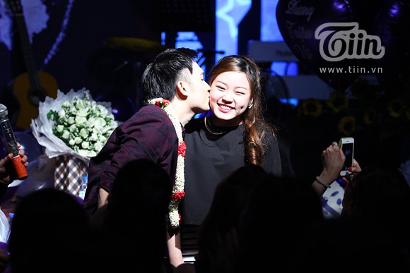 Không khí âm nhạc nóng dần lên khi anh nhiệt tình song ca cùng các ca sĩ hải ngoại Thùy Trang, Phi Nhung. Tuy nhiên, để lại ấn tượng sâu đậm nhất cho khán giả là màn ôm hôn ngọt ngào để đáp lại tình cảm và quà tặng từ người hâm mộ.