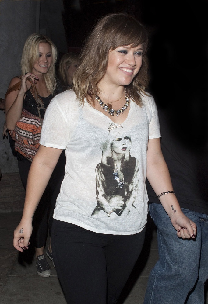 | Kelly Clarkson và chiếc áo có in hình "quả bom sex" Marilyn Monroe. |