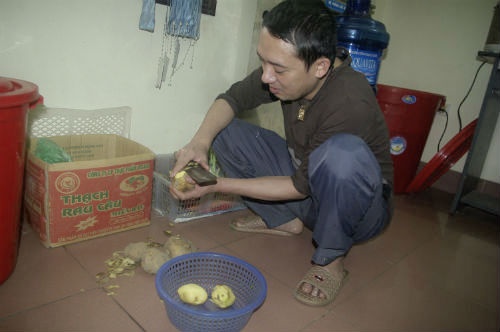 | Cuộc sống giản dị của danh hài Tự Long. Khi nào vợ đi vắng, anh thường vào bếp nấu cơm cho các con. |